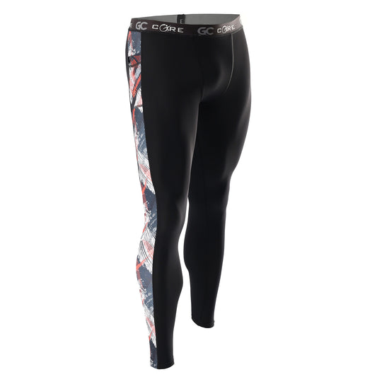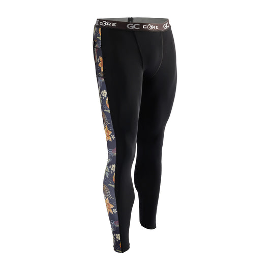 Men's Long Compression Tights - Black with Green Camo